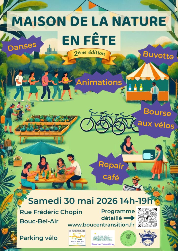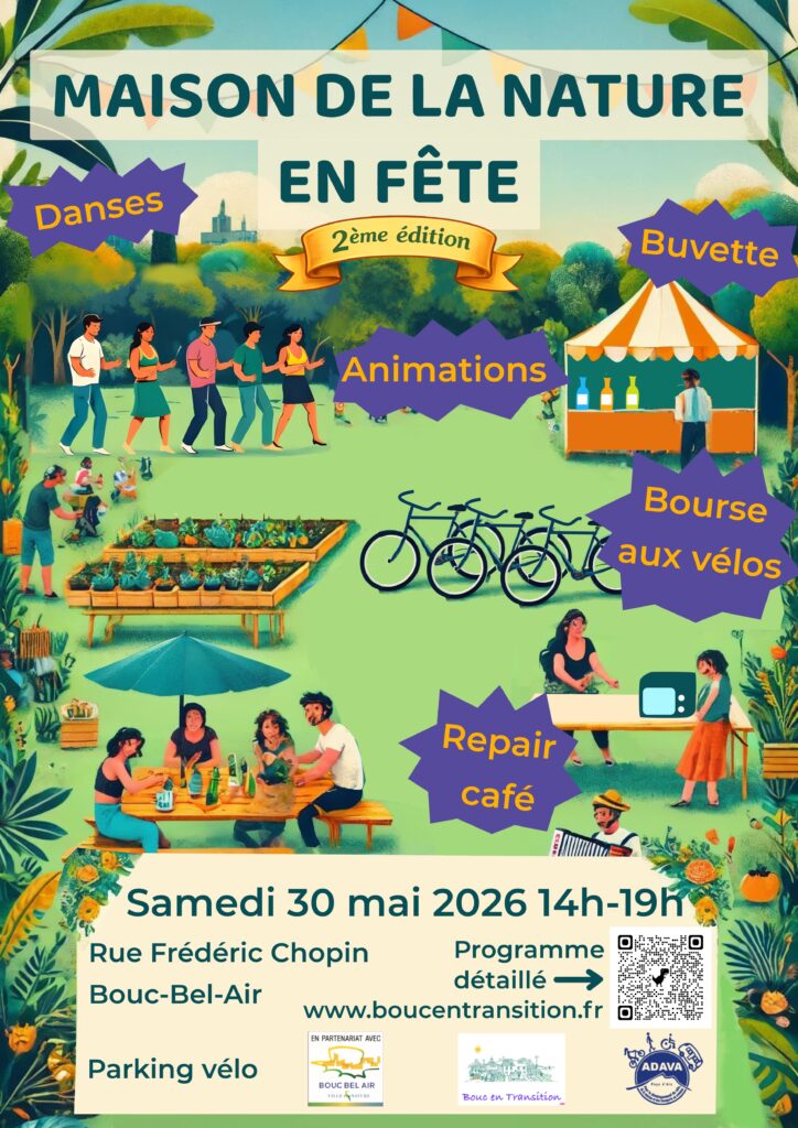 Une ambiance musicale ludique pour s’approprier la transition écologique sans appréhension, grâce à l’ADAVA, le Repair Café du Pays d’Aix, Amandine de l’école de musique, Aixtra Swing, l’orchestre Without Jane, l’Eveil des Simples, la LPO, Quitterie et le Qi-Gong, le jardin de l’Orée, les Machines de Larry.